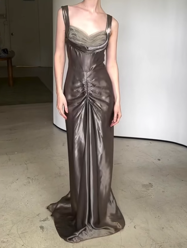 Vintage Sheath Straps Brown Tulle Satin Prom Dress Evening Dress HZ1023
