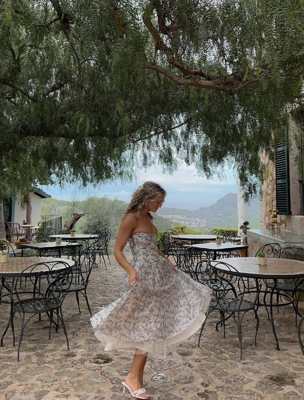 Cute A Line Sweetheat Neck Print Floral Blue Satin Long Prom Dress Evening Dress HZ1023