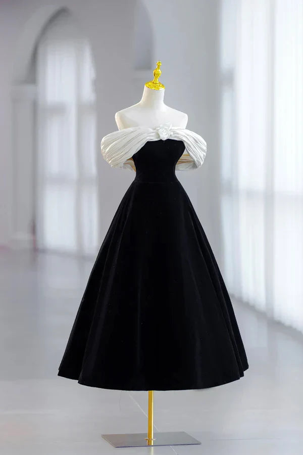 Elegant A Line Off the Shoulder 3D Floral Velvet Prom Dress Evening Dress HZ1023