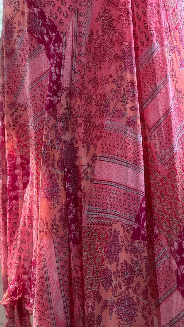 Pink Print Floral Mermaid Spaghetti Straps Chiffon Prom Dress Evening Dress HZ1023