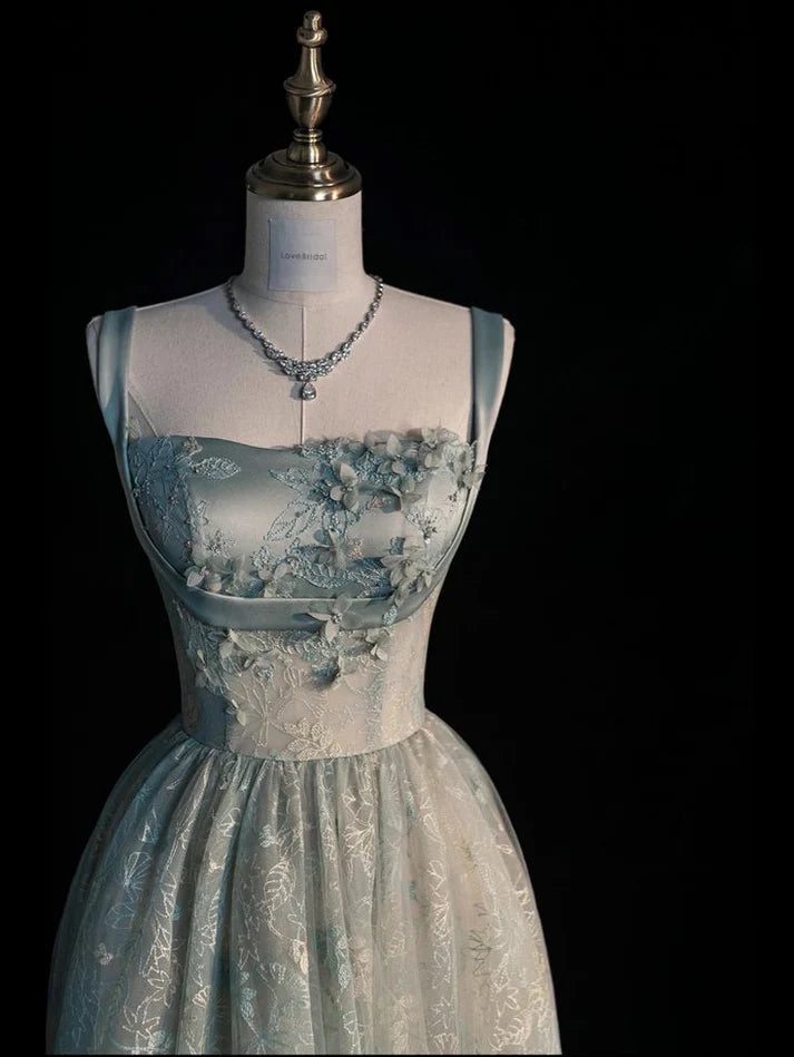 Elegant A Line Strap Appliques Satin Tulle Prom Dress Graduation Prom Dress HZ1023