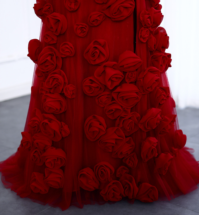 Stunning A Line Sweetheart Neck 3D Flower Burgundy Prom Dress Evening Dress HZ1023