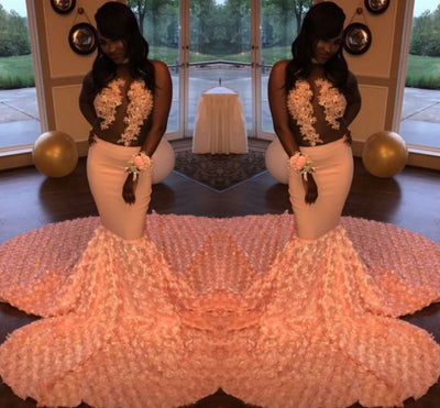 GORGEOUS PINK FLOWERS LACE APPLIQUES PROM DRESS HZ1023