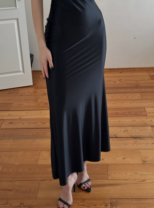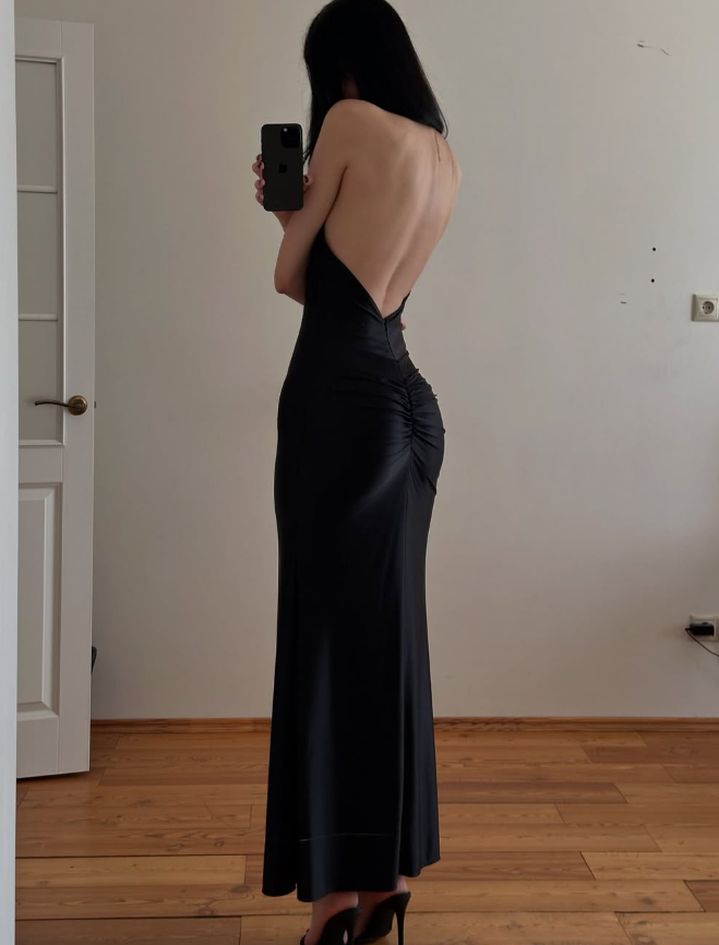 Elegant Simple Black Mermaid Halter Satin Evening Dress Party Dress Formal Dress HZ1023