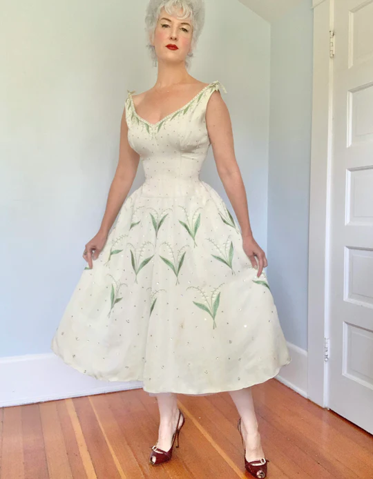 Lily of the Valley Embroidery Exquisite V Neck Satin Party Dress Prom Dress HZ1023