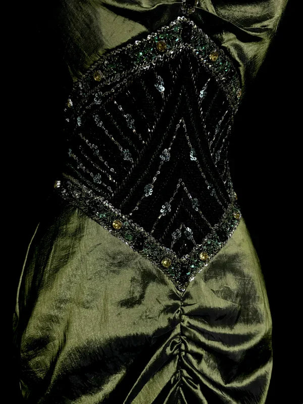 Vintage Mermaid Halter Olive Green 1950s Retro Classy Satin Long Prom Dresses Party Dress 21st Birthday Outfits Graduation Dresses HZ1023