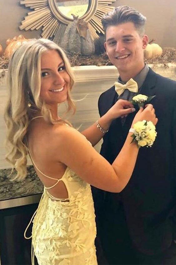 Yellow lace party dresses mini tight homecoming dress HZ1023