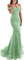 GORGEOUS GREEN LONG-SLEEVE LACE APPLIQUES SPLIT MERMAID PROM PARTY GOWNS HZ1023
