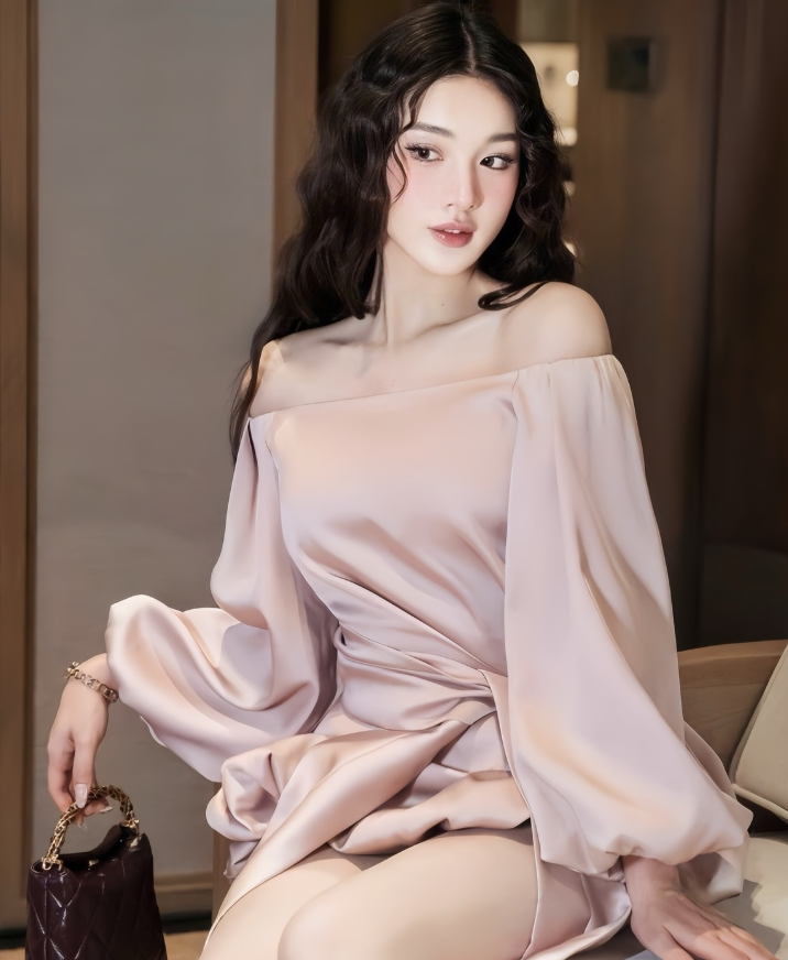 Gentle A Line Long Sleeve Satin Short Homecoming Dress Cocktail Dress HZ1023