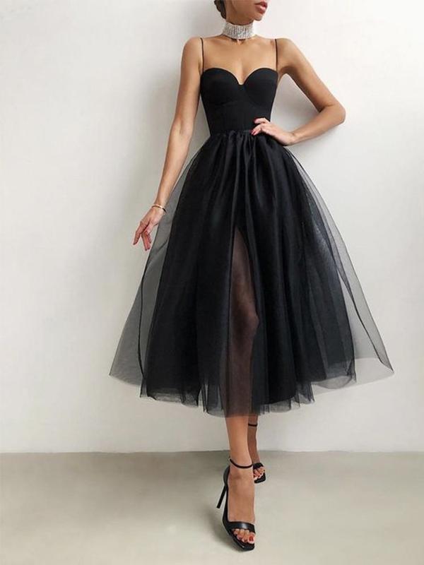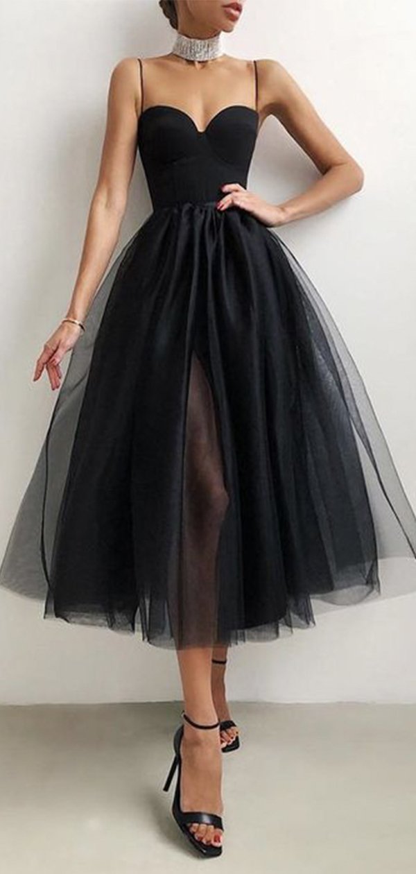 A-line White Tulle Spaghetti Straps Modest Prom Dresses HZ1023