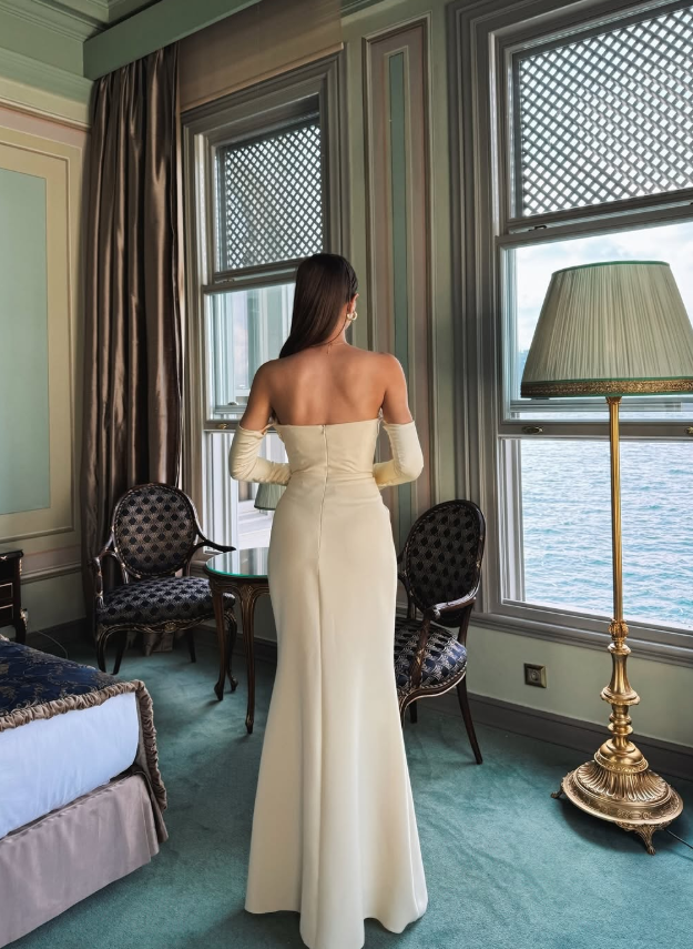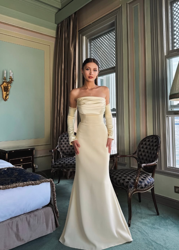 Apricot Simple Mermaid Strapless Satin Long Prom Dress Formal Dress Party Dress HZ1023