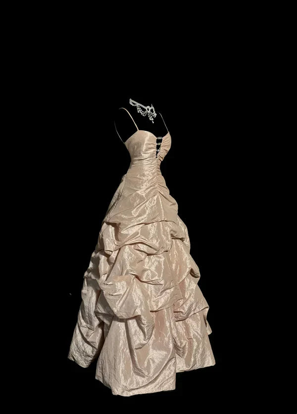 Apricot Vintage Spaghetti Straps 90s Long Prom Dresses Party Dress 18th Birthday Outfits Graduation Dresses HZ1023