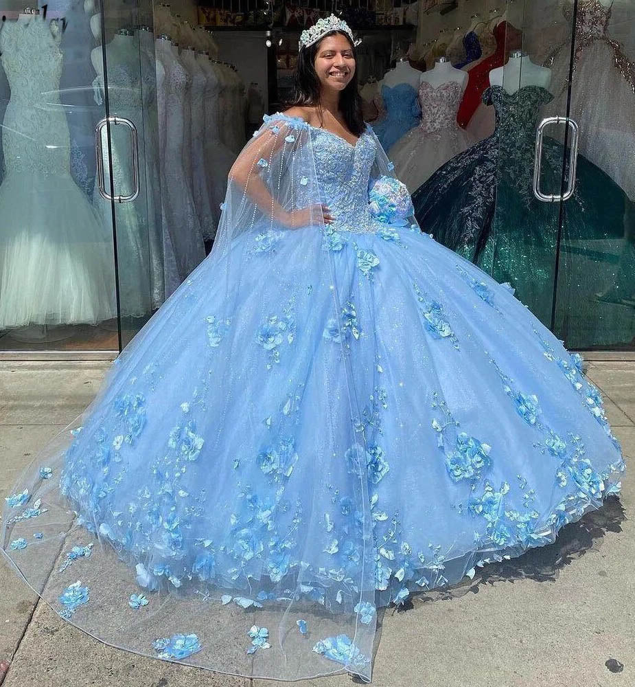 Ball Gown Pink 3D Flowers Off The Shoulder Quinceanera Dresses, Sweet 16 Dresses HZ1023