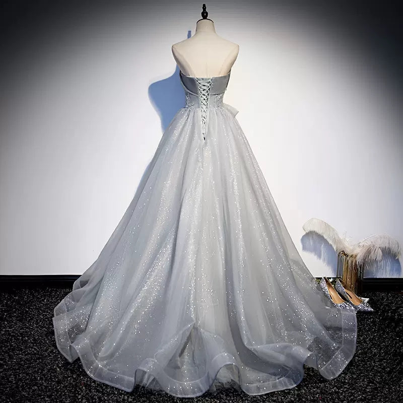 Ball Gown Strapless Tulle Long Prom Dresses HZ1023
