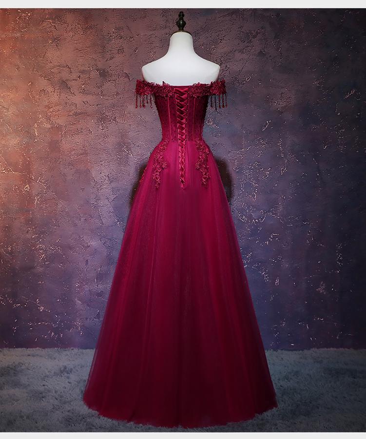 Beautiful Wine Red Tulle Sweetheart Long Prom Dress, A-line Party Dress HZ1023