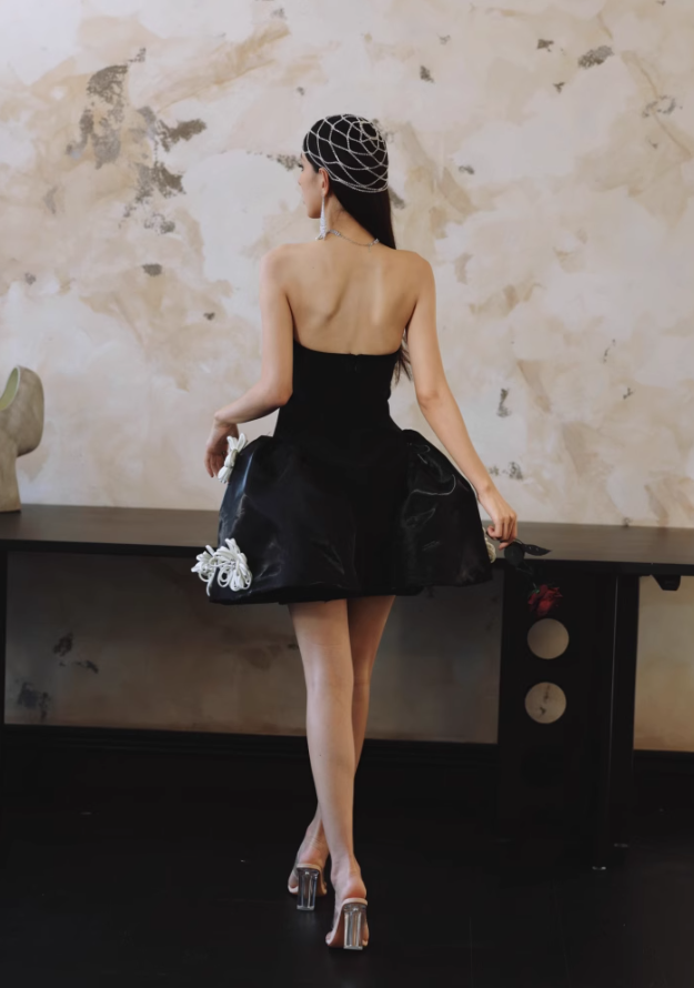 Black Sexy A Line Sweetheart Neck White Appliques Satin Short Homecoming Dress Cocktail Dress HZ1023