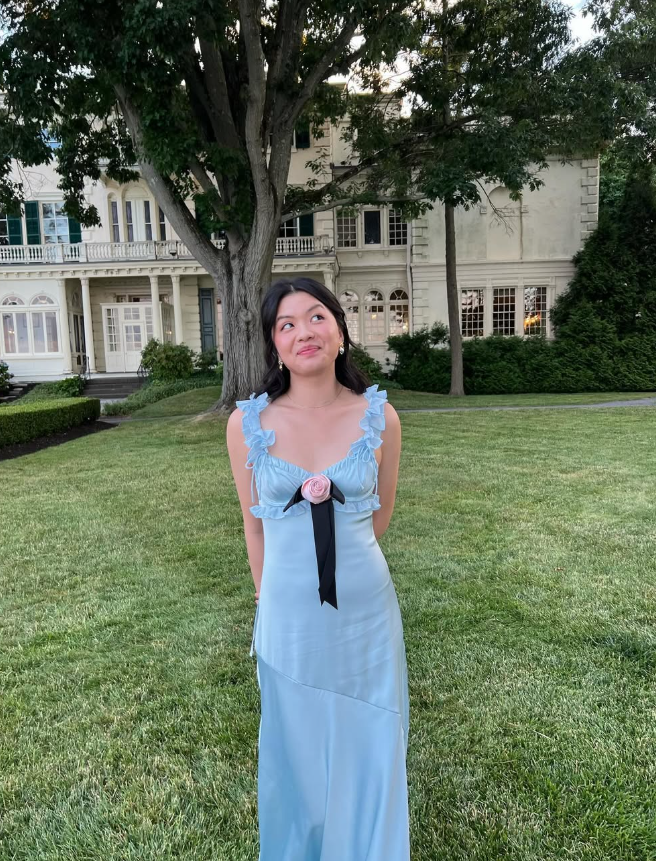 Cute A Line Spaghetti Straps Flower Bow Blue Satin Long Prom Dress Graduation Prom HZ1023