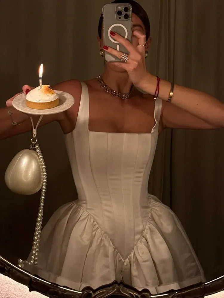 Cute A Line Straps Corset Ivory Satin Short Homecoming Dress Birthday Dress HZ1023