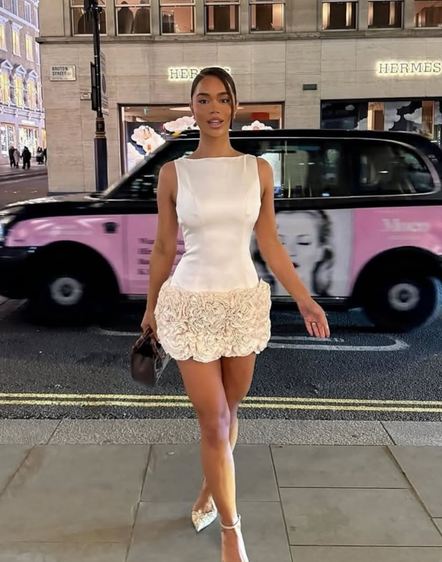 Cute White Sheath 3D Flower Satin Open Back Short Homecoming Dress Outfits HZ1023