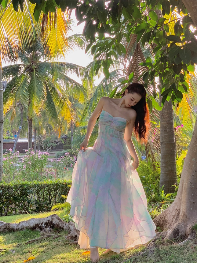 Dreamy Multi-color A Line Strapless Ruffle Chiffon Long Prom Dress Party Dress HZ1023