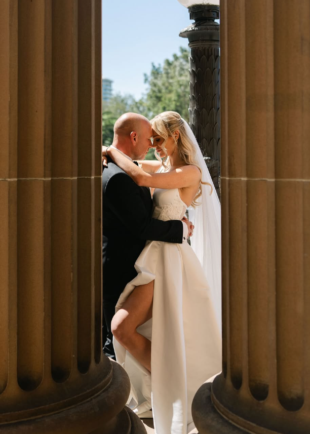 Elegant A Line V Neck Appliques White Satin Long Sweep Wedding Dress HZ1023
