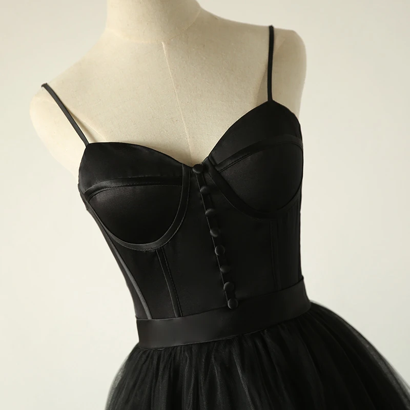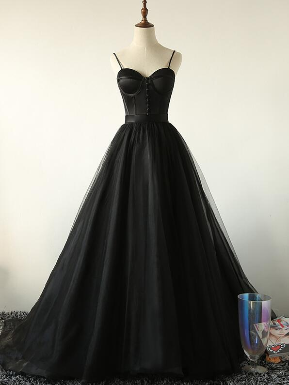 Elegant Black Straps Tulle Sweetheart Prom Dress, Black Party Dress HZ1023