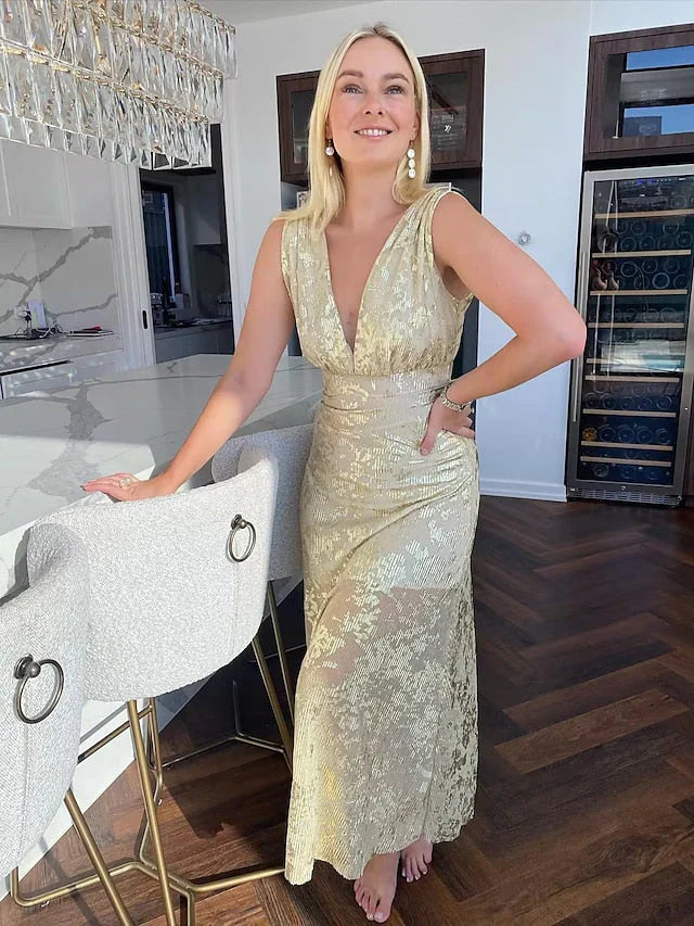 Elegant Sheath V Neck Satin Long Prom Dress Evening Dress HZ1023