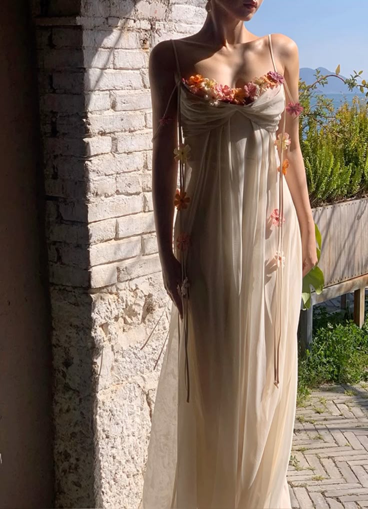 Flowy Ivory A Line Spaghetti Straps Flower Tulle Prom Dress Party Dress HZ1023