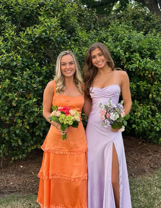 Light Purple A Line Spaghetti Straps Stain Long Prom Dress Evening Dress with Slit HZ1023