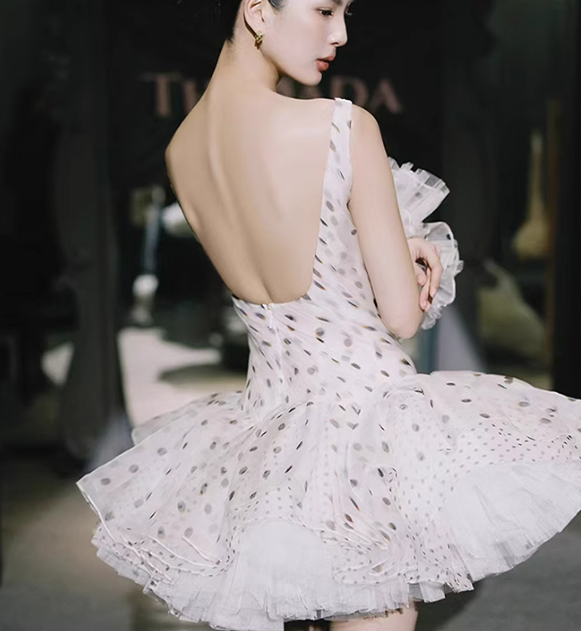 Polka Dot A Line Straps Pleated Chiffon Tulle Short Homecoming Dress Cocktail Dress HZ1023