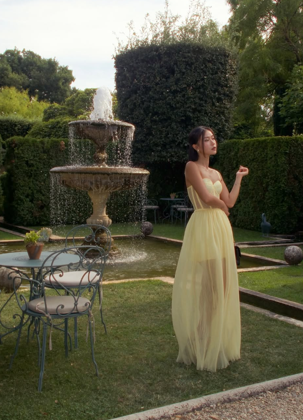 Pretty A Line Spaghetti Strap Corset Light Yellow Tulle Prom Dress Evening Dress HZ1023