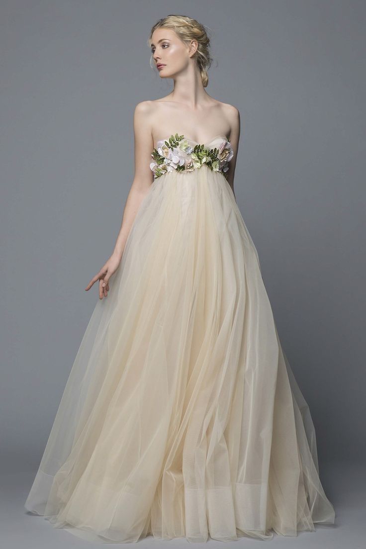 Princess A Line Strapless Floral Apricot Tulle Prom Dress Evening Dress HZ1023