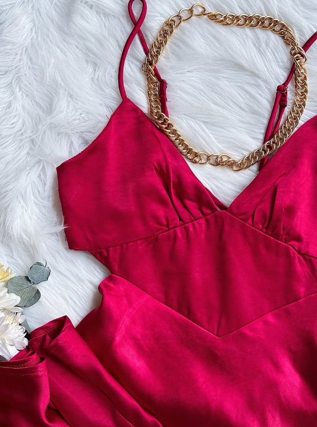 Sexy A Line Spaghetti Straps Red Satin Open Back Long Prom Dress Evening Dress HZ1023