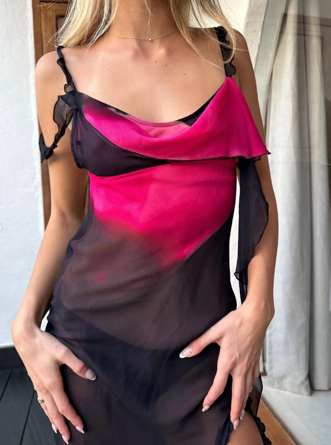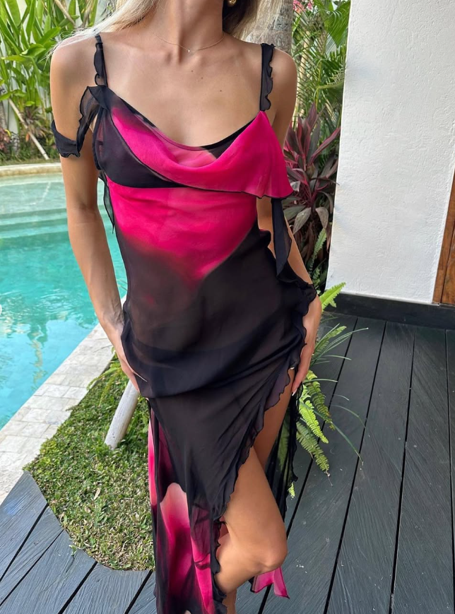 Sexy Sheath Spaghetti Straps Ruffles Chiffon Prom Dress Evening Dress HZ1023