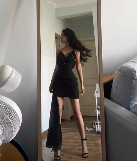 Sexy Sheath Straps Butterfly Sequin Black Chiffon Short Homecoming Dress Cocktail Dress HZ1023