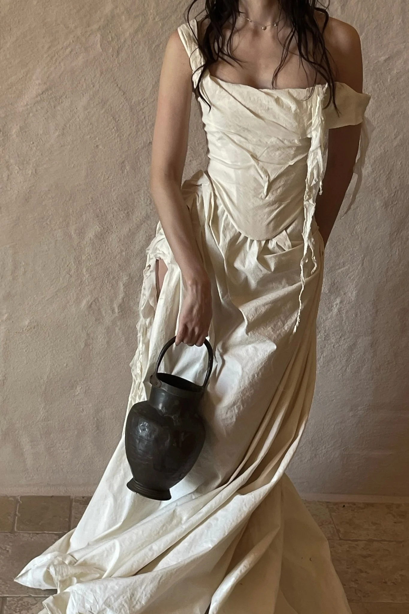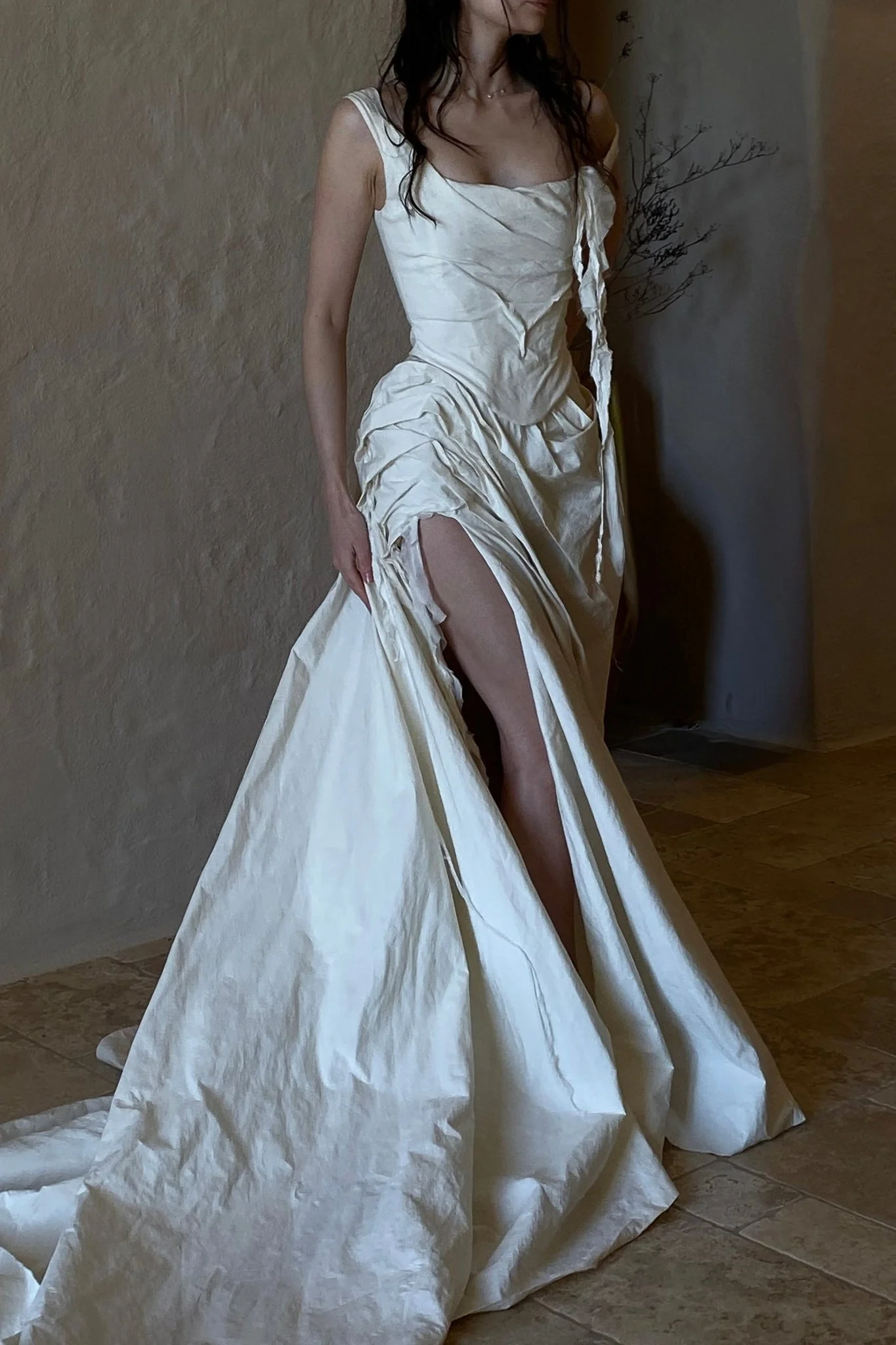Stunning A Line Off the Shoulder Satin Long Prom Dress Evening Dress with Slit HZ1023