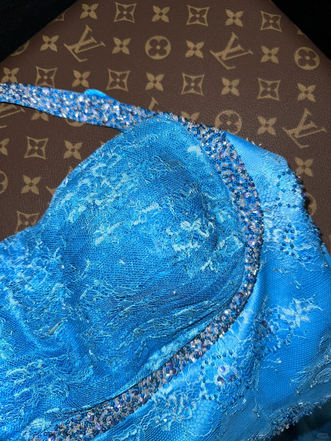 Stunning Mermaid Halter Beaded Sequin Blue Lace Satin Long Prom Dress Party Dress HZ1023