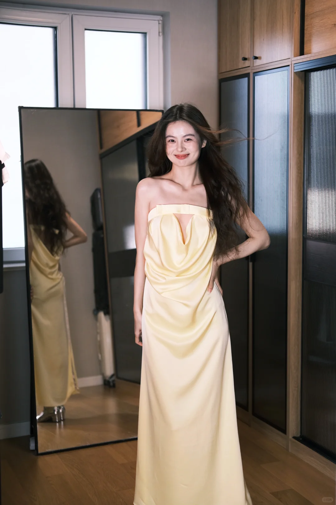 Unique A Line Strapless Yellow Satin Long Prom Dress Formal Gown Party Dress HZ1023