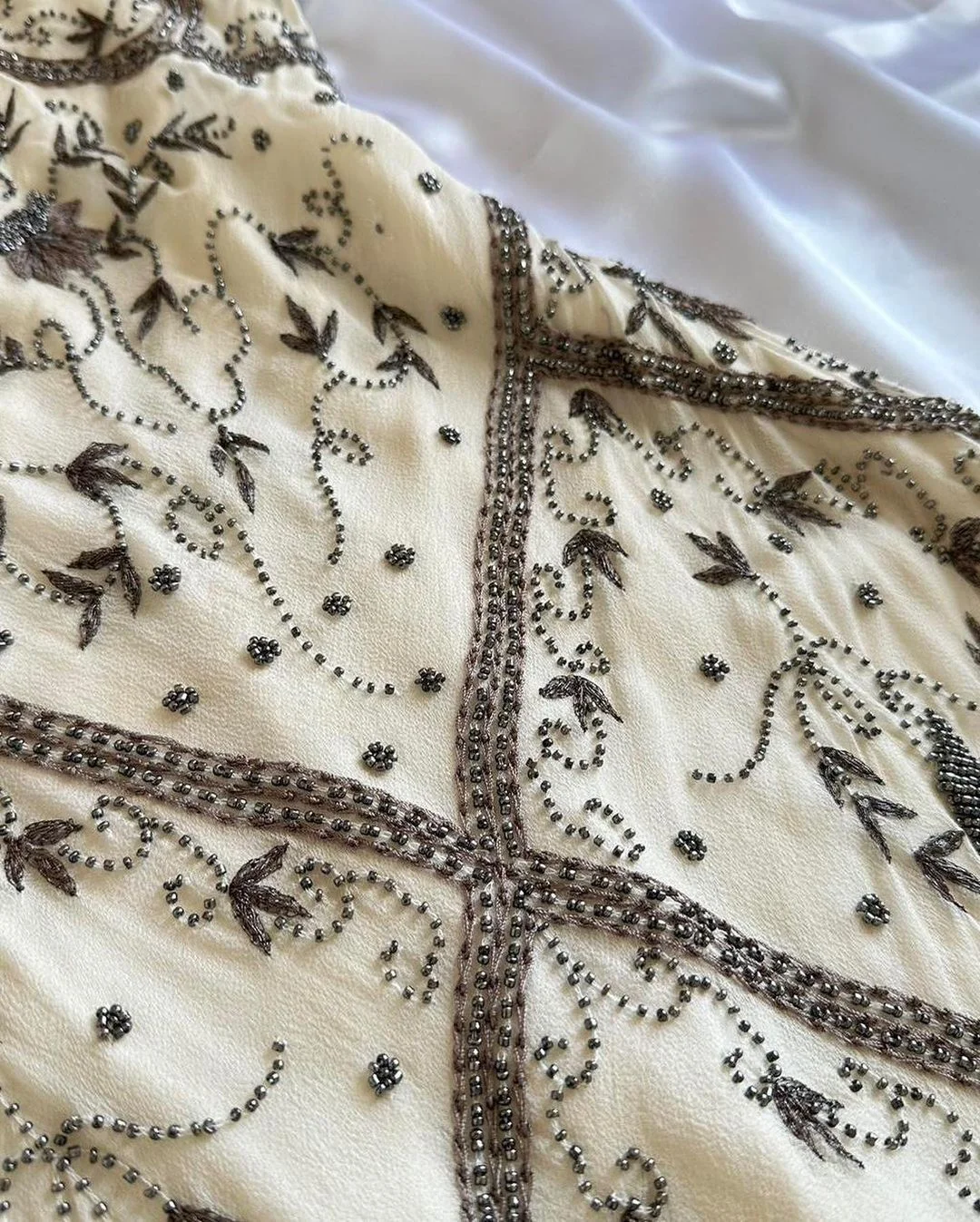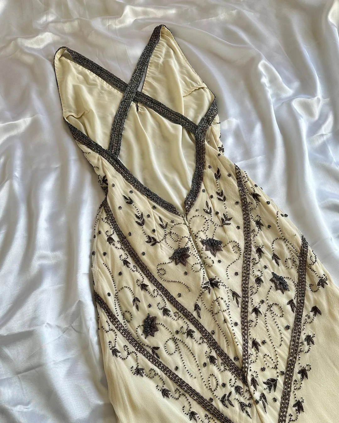 Vintage A Line V Neck Beaded Black Chiffon Open Back Prom Dress Evening Dress HZ1023