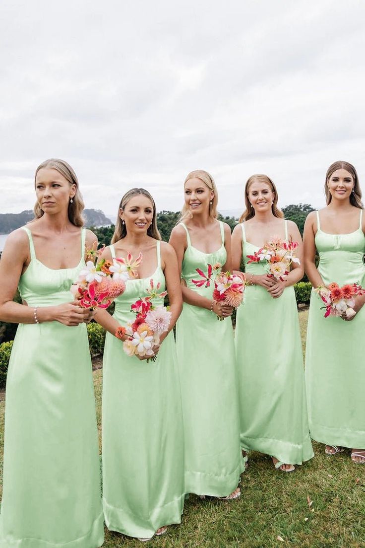 Yellow A Line Spaghetti Straps Satin Long Prom Dress Bridesmaid Dress HZ1023