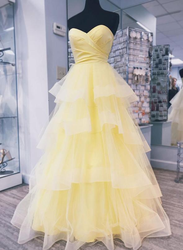 Yellow sweetheart neck long prom dress, yellow evening dress HZ1023